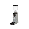 Instant grinder/measurer with aluminium base, electronic micrometric control; can grind for a single- or double-dose coffee and has three different operating modes (automatic, preset and manual). Flat grinders, manual reload button; filter holder is adjustable for height, lighted symbols indicate mill count and advise when it’s time to substitute the grinder.